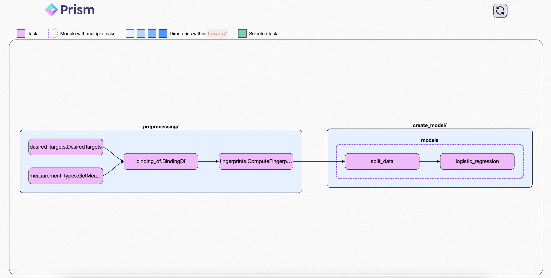 calls to create the DAG, and stores information about the compiled project in a JSON manifest. This manifest contains information on the DAG's topological sort and the source code for the different tasks, and it is used in the backend construction of the website.